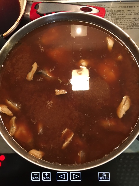 ②上記調味料を加える。赤味噌をメインに。白味噌は甘みを加える程度に。